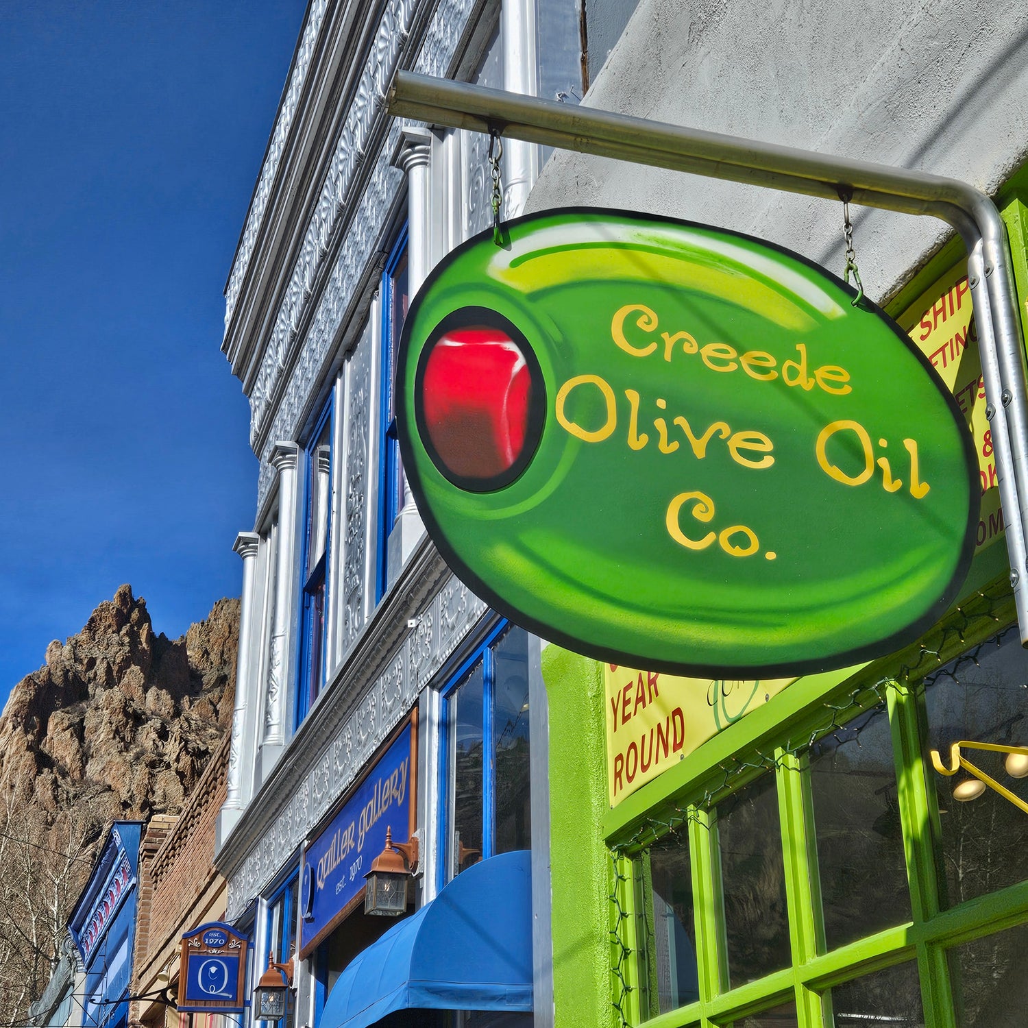 In addition to the great selections of oils and vinegars, the little shop also carries baked goods from Sunflour Cafe located down the valley in Monte Vista, premium bison raised in northern Colorado, and Pappardelle's Pastas (with many gluten-free options) out of Denver. You can also find gourmet grocery like pastas from Italy, pepper jellies from the fertile soils of Oregon, local award-winning salsas created by Creede locals, and hatch chile products from Fresh Chile Company. Creede Olive Oil Company also offers a great variety of gifts, kitchen and pantry items, olive oil skin care products, and custom gift baskets.