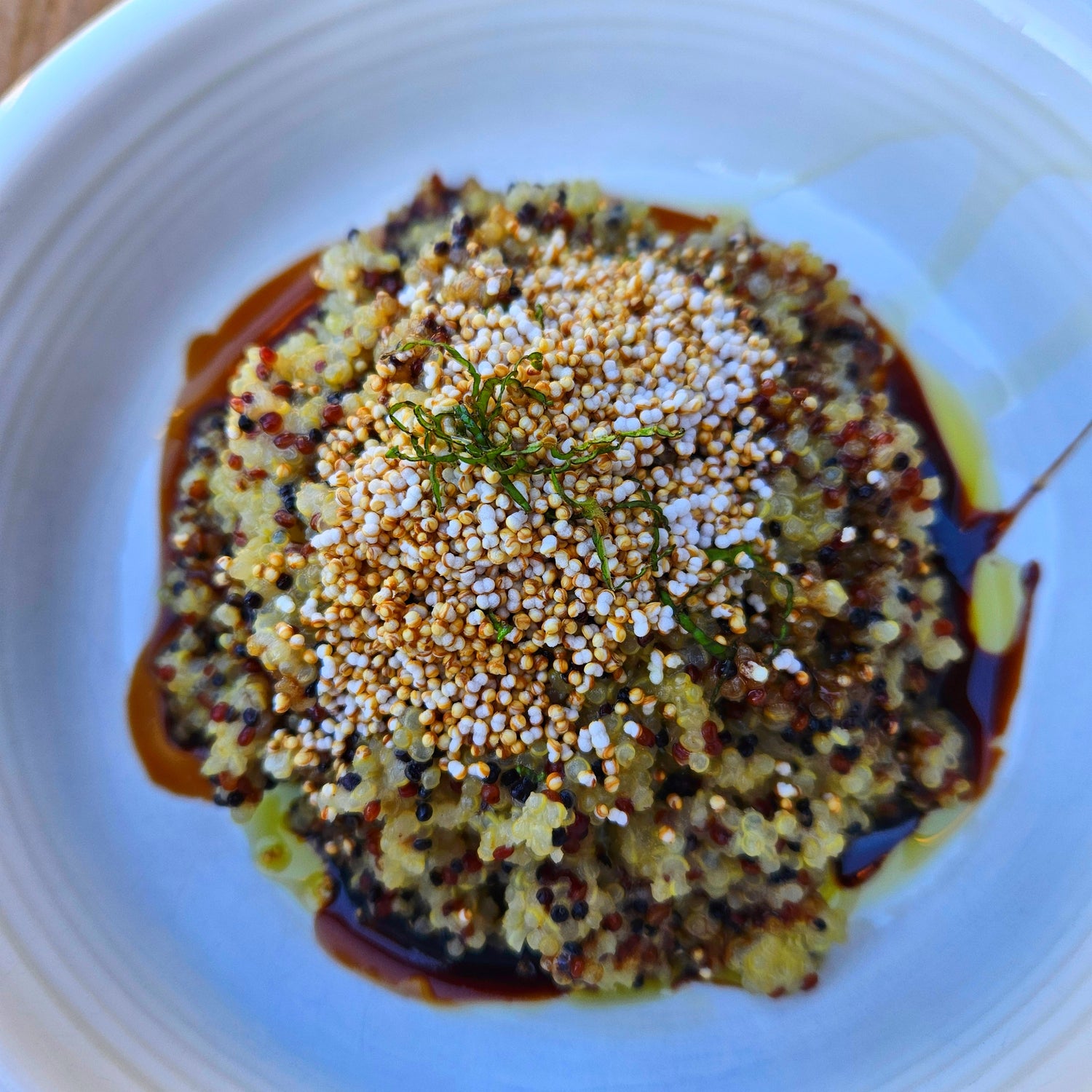 Greet the day with this subtly sweet, nutty breakfast! Topped with puffed Amaranth or whatever your heart desires!