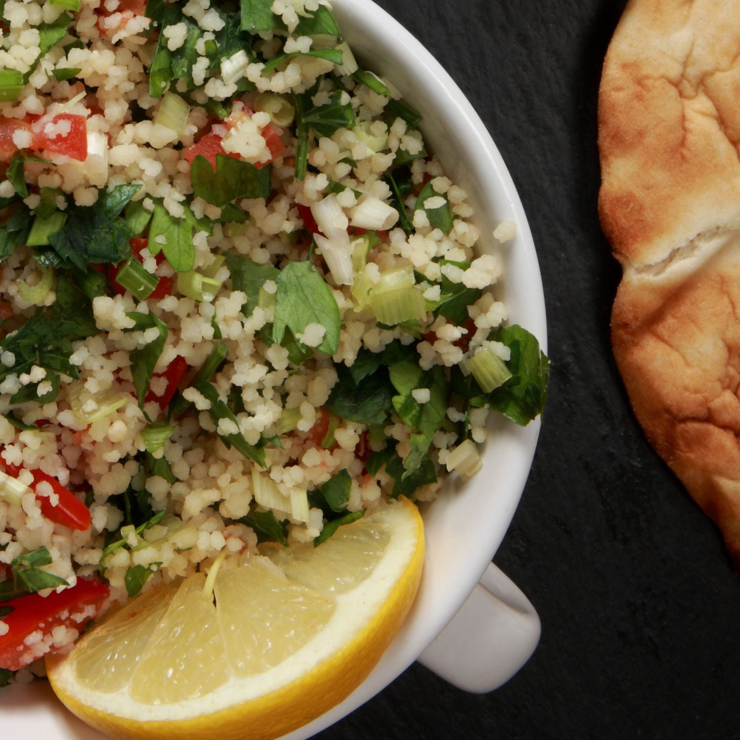 This salad, packed with fresh herbs, vegetables and grains, is bursting with flavors of the Mediterranean! A great addition to cookouts or as a main dish!