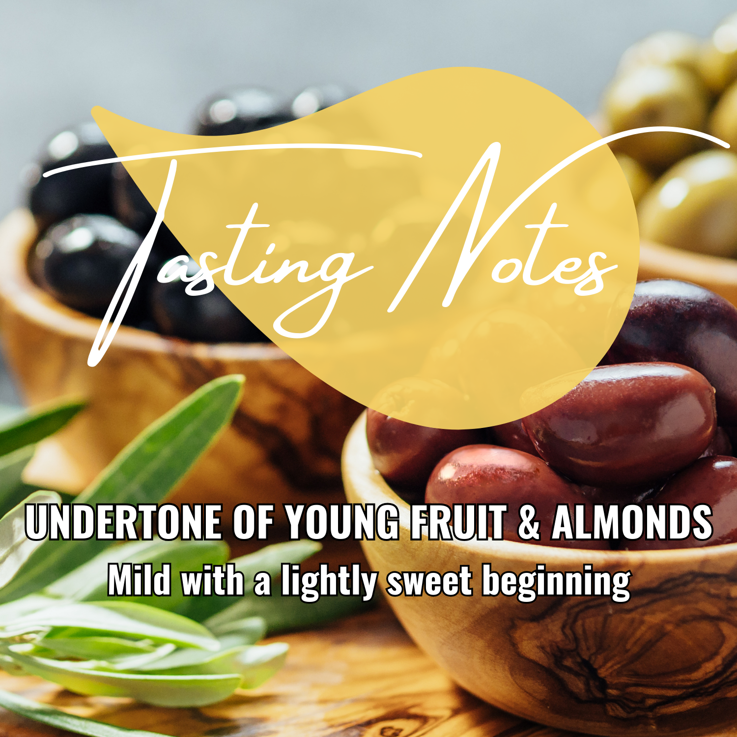 Tasting attributes: Starts slightly sweet, with a slight bitter taste of unripe fruit and then finishing with a peppery almond aftertaste. It has a lively and fresh aroma