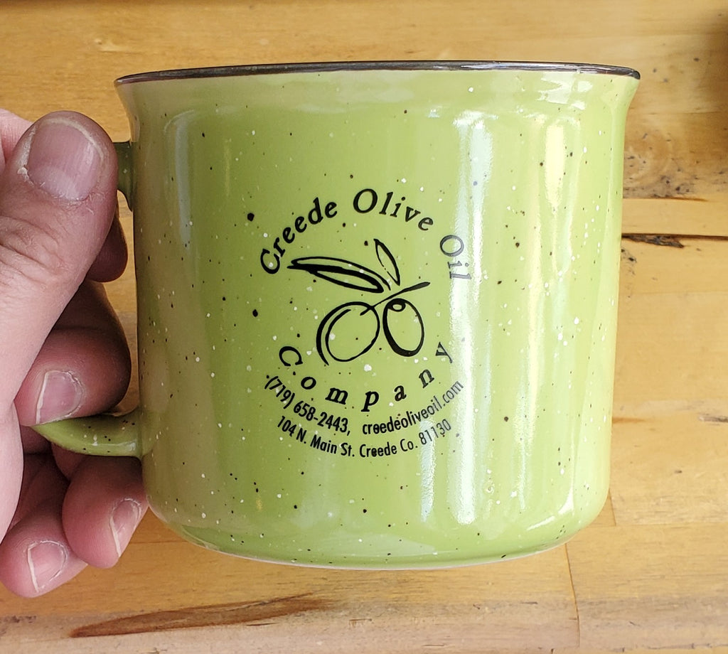 Show your love for Creede and Creede Olive Oil, with our new 16 oz. ceramic mug with logo!! Pair with one of our new House Blend Coffees!!