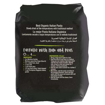 Through the generations, the Mantova family has become recognized as premier testers and tasters, curating only the finest pasta to bear the family name. Our Mantova Organic Farfalle Pasta is made from organic durum wheat flour, harvested and processed from the sunny, fertile soil of Apulia in Southern Italy—a region renowned for producing nutrient rich, flavorful grains.